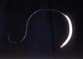 Their heads are at the narrow end while their tails, containing the reproductive system, are enlarged and thicker giving them a 'whip' like shape.