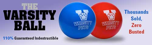 No human interaction necessary! The Varsity Ball is designed to stimulate a dog's natural herding instincts and play drive. It's too big for dogs to destroy or possess in their mouths, so they drive themselves to exhaustion just trying to "figure it out."