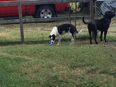 We have several ideas about what she could be mixed with because of her facial features/expressions and her temperament. She weighs around 80 pounds now! She is high strung but very loving and needy for attention. She plays hard and is a super fast runner!