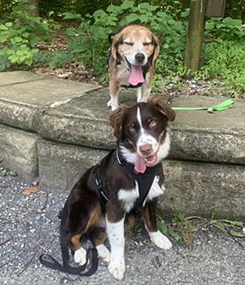The Aussie puppy is 5 months old, is fed Purina Pro Plan Savor Puppy Formula, with a just small amount of canned adult food (my 4 dogs split a single can in their dinner, just for added flavor) He’s up to date on all vet care and has gotten a clean bill of health so far at all visits. He gets a good bit of exercise, fenced-in yard with other dogs to romp with... walks around the neighborhood, wooded hikes, and swimming (mostly at creeks/rivers).