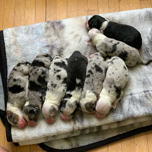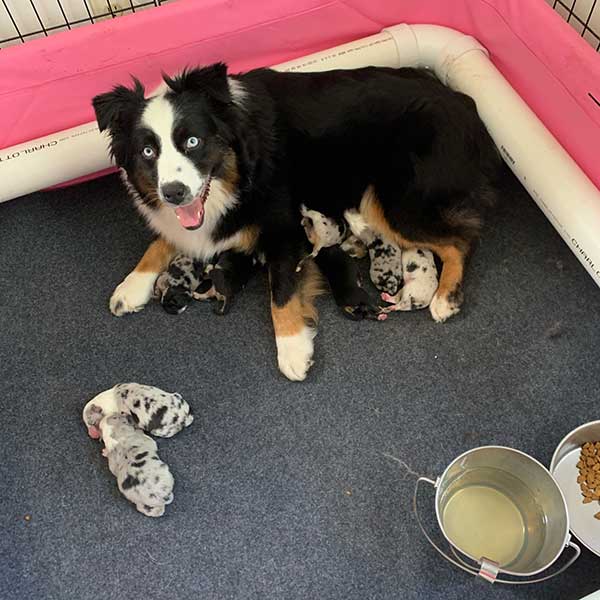 We are an Australian Shepherd breeder who takes pride in everything about Aussies and what they are meant for. Our Aussies are raised as companions or working dogs. They live in our house as part of our family, not in an outdoor kennel. They are bred for a great temperament, structure & bid ability. They have an off switch for relaxation as a couch potato. Our Aussies are chosen from working and championship blood lines. They are also genetically tested by Paw Print Genetics, hips, elbows & eyes done by OFA. Eyes done yearly. All puppies will be current on deworming & shots. They will come with a 3 yr health guarantee & AKC registered. We have 2 litters a year to guarantee good quality.