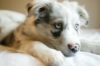My almost 4-month old Aussie pup has very unique markings to me and I’ve had trouble determining whether he’s a light blue merle or a darker red merle. I’m just curious and was wondering if someone could tell me what “color” he might be classified as.