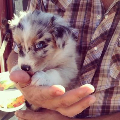 I just brought home my first Aussie pup at 8 weeks old. He is absolutely gorgeous and is already showing signs of agility and intelligence! His name is Blaze and will be living with me and a 6 year old female Blue Heeler.