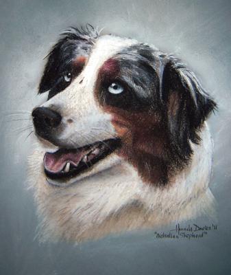 This dog was at a local dog show and had the most amazing ice blue eyes so had to paint him. The patterns on his coat was tricky.