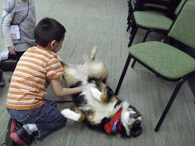 Bryn and Sera love to entertain, so they had the opportunity to do that when Lewis University in Romeoville, IL asked if they would come to Take Your Kids to Work Day. We talked about dog safety and demonstrated the proper way to approach a dog, what should be done if a strange dog approaches what to do if you should see a lost dog. Then we had fun. Bryn and Sera both love to do tricks. Sera loves to play a guessing game in which she guesses which number the kids are thinking of. Of course, Sera does this from scent discrimination, but the kids could not figure it out. So, is Sera smarter than a 5th grader? Bryn absolutely loves kids. I believe she thinks that they and her are the same. Her special trick is to say her prayers, turn off a light and then roll up in a blanket. Bryn also like belly rubs a lot. They were the highlight of Take Your Kids to Work Day. I hope that we be able to do this again next year.