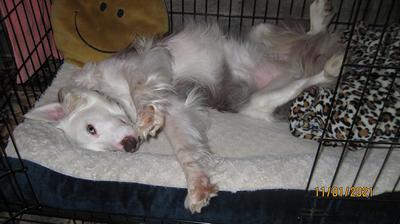 Keller Mae is the result of poor parental pairing, bad genes... At 2 1/2 years of age she was left at an SPCA where I had my name in after loosing my 13 y.o. Newf. I was called the day after Keller Mae was discarded by her previous owner(s) and went right in to meet her. With lock-downs quickly becoming stricter, I was not able to get her out of there until 2 weeks later and had to foster her until her spaying was completed which gave me some time to do my homework/research on the breed and on deaf dogs which I knew she was upon meeting her.