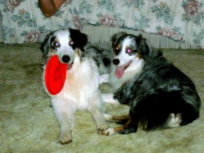 My two Aussies: Sidney, 5 years and Chance, 2 years. It doesn't matter what kind of day I have had at work. When I get home, they are right there to greet me and play frisbee. Life would be pretty boring if not for my two Aussies.