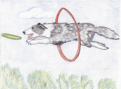 A friend at work had a Border Collie/ Australian Shepherd mix. She asked me to draw him. Knowing how both Border Collies and Australian Shepherds are about frisbees, this drawing was inevitable I think.