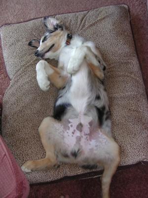 My Blue Merle boy (now 3yrs) was named Weasel by my girlfriend for good reason! When we are eating he comes over and lays down very close. Just in case any food should happen his way. LOL when I tell him to go lie down, he forgets the go part.