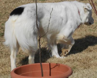 I have an Australian Shepard or X and was wondering what color he is. He is mostly white, but has some dots around the ears and a black spot on the base of his none existing tail, looks like a coy fish. Also under his white coat he has gray blackish smeared dots, if you look at the picture you can see it near his flank.
