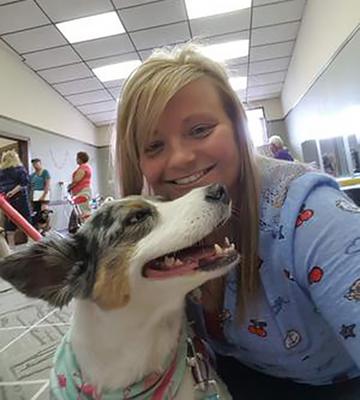 I'm a RVT and a long time ago I worked at an emergency vet clinic. I had just graduated college and moved out and was in search of a dog. One Sunday as I came in for my shift I saw this beautiful sweet 8-month-old Aussie. She had a broken leg from getting hit by a car and her owners were going to put her down. I felt an instant connection to her and they ended up giving her to me.