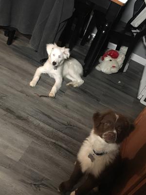 He is full of energy, runs, plays, knows several hand signals and catches on really quickly to new signs and scenarios. We realized Kasper was deaf within 24 hours of having him home and obviously the only logical thing to do was... get another one... duh! A hearing buddy! And it was really the best thing we could have done for him, I believe. Him and Kodiak are inseparable and he follows Kodiak around like he's lost. Which helps him out a lot with being able to run around off leash.