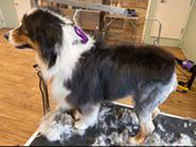 Reward offered for this 7 yr old, neutered male Aussie. About 70 lbs, black, white and brown, very friendly. Recently groomed to remove matts and rear end is very short.