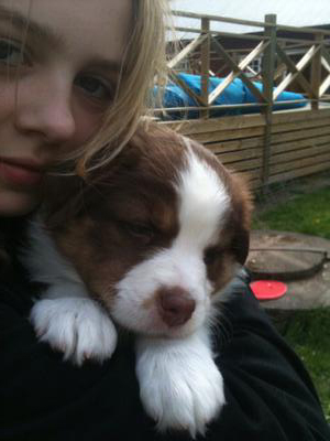 When we came home I started to look on the internet to figure out what breed it was. I found out it was an Australian Shepherd and read as mush as possible about them. I also went to dog shows and talked to breeders.