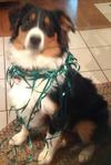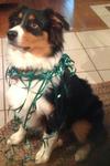 Maddie is 6 months old... we have her for 1 month. We lost our beloved Aussie Katie, of 12 years in March 2014. Our home and hearts were empty with out her. Since Maddie has come into our home, it is filled with happiness. She is a very busy girl and I'm afraid she also is a thief... every thing from shoes to food to TV remote, also has been known to take every thing out to the yard thru the pet door.