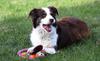 Gus is a purebred with a loving personality. He has a typical Aussie coat coloration—listed as red and white. More accurately, a chocolate head and neck that blends to cinnamon toward his hind legs—forehead, muzzle and chest, predominately white along with lower portion of his legs. Dark brown eyes with a blue fleck in his right eye. Gus moves quietly through the house—his demeanor, calm and gentle. He's an affectionate little guy with a winning smile and enjoys his human pack. Gus kicks it up a notch when outdoors. He shifts into high gear and runs laps around the yard. Gus enjoys an audience.