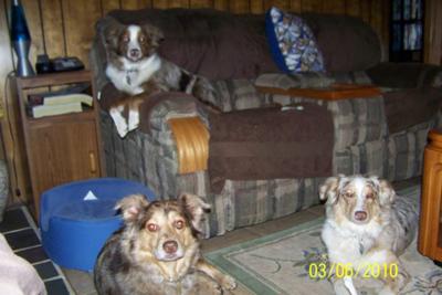 Bonnie was my first Aussie. I brought her home when she was 8 weeks old. She was born on Halloween. (should tell you something about her) At first she was scared and cried all night. After about a week she was home. What a sweet little girl. I got a min Schnauzer a couple of weeks later and they have been the best of friends.