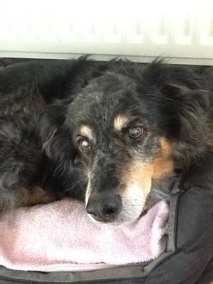 Sheila was born on Halloween in Canada in 1999. We had to make the hardest decision in our life today. She was 14 1/2 and for 6 years had been a diabetic. She will be remembered for bringing trees home from her walks. The trees or logs would weigh more than her be 4-5 feet long and she would carry them with much pride. In 2011 Sheila flew from Canada to Wales in England. Forever loved. Died and cremated on 05/06/2014.