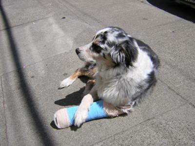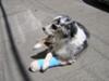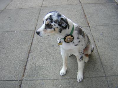 Cosmo was the last of his litter. At 6 months old it was not looking as if he would be adopted. I took him home and realized he had not been properly socialized. He would always hide in the furthest corner of the house and was very skiddish. After 6 months of intensive training he turned into the best Aussie I've had yet. He is so calm and intelligent. He is beautiful and gets attention everywhere we go. He can walk off leash even in crowded China town, San Francisco. He grew up on 20 acres in Truckee, Ca. and got to run free which I'm sure added to his independence and experience. He's very dominant and very proud. He prances when he walks as if in a parade. His older black-tri sister taught him the ropes. He's the last of my 3 Aussies now and getting up there himself. I love my Cosmo so much; he is such a character.
