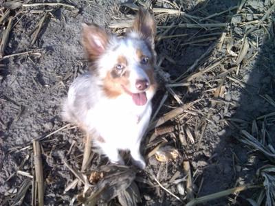 Lucy was born December 8, 2008, I got her August 14, 2009 from a local Miniature Australian Shepherd breeder, Denise Hillman. She was about a year old. She came to me with great manners and was well behaved. There were, however, somethings we needed to work on... It seemed to me that Lucy did miss her previous family, she seemed confused, sad, heartbroken. Her old name was Ruby, I believe she lived in Valparaiso, IN. For some reason, that name didn't attract me, didn't fit her new life style, didn't coincide with her unique personality. It took me a couple weeks and a few names to finally decide on the name Lucyintheskywithdiamonds. The name fits her perfectly. Her eyes remind me of the sky, that unique shade of light blue. They sparkle like 25kt diamonds.