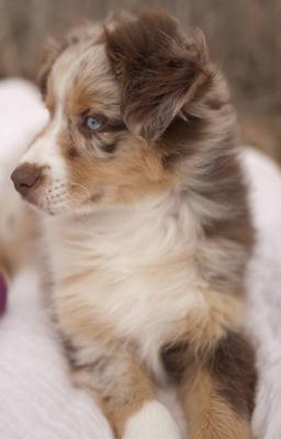 So I lost my Australian Shepherd about 6 months ago. I have just recently decided I am ready to get a new friend. He is a red merle with 1 blue and 1 green eye. We named him Roscoe. He is the most laid back Aussie I have ever seen! It was an instant joy when I brought him home. I missed having an Aussie in the house so much. Roscoe is so well behaved with my one year old daughter and that make me so happy. My wife and I know we will be Aussie lovers for life!