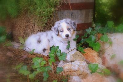 This is Pickles (our two year old named her). We have had her for about a week now. She is a beautiful, 8 week old, Aussie puppy, full of energy. She loves to chew on everything! She loves to play outside and chase balls,squeaky toys and our two year old. But at night she just loves to snuggle up in the bed with us right on the pillow. So far, so good with the the house training but we really have to be on top of it. We have to make her go out in the heat of the day. Not too happy about the hot days! She seems to be a very smart puppy.