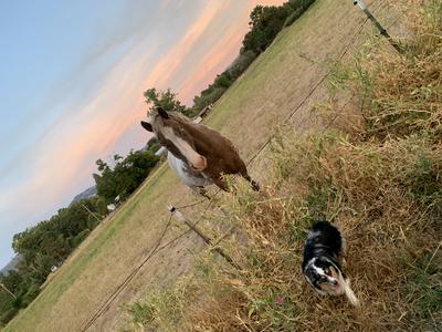 She is 2 1/2 and she’s a blue merle. She weighs about 19 pounds and she is very petite for her size. She is loved.