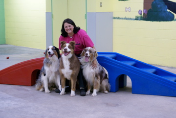 I have 3 Aussies. My oldest is Roscoe, a red tri, 8 years old. Turbo is my blue merle, he is 4. Cowboy is my rescue, he is Turbo's brother, he is a red merle.